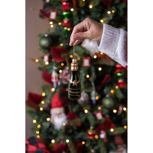 6GL4342 Addobbo natalizio Bottiglia 12 cm Decorazioni per albero di Natale in vetro verde