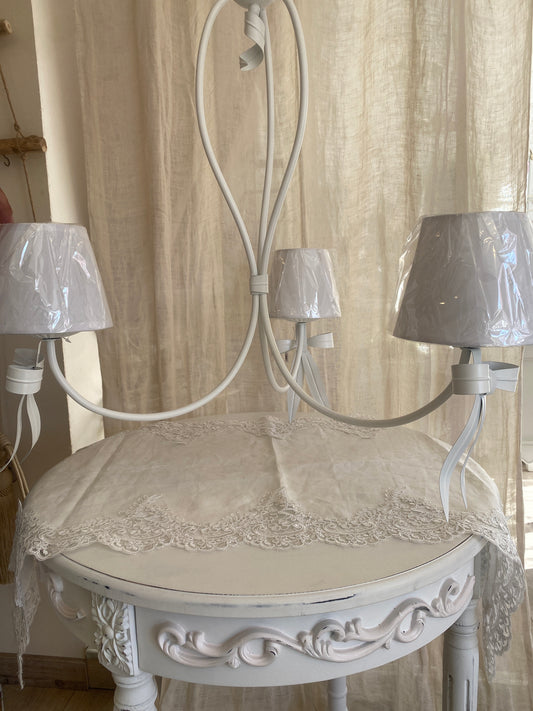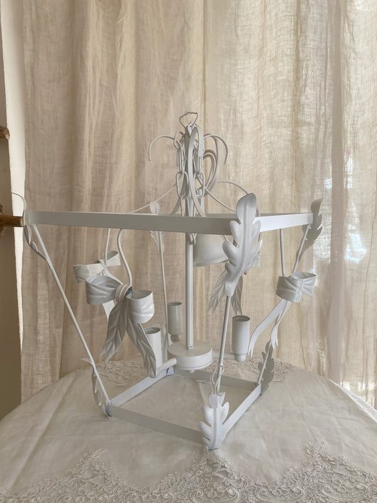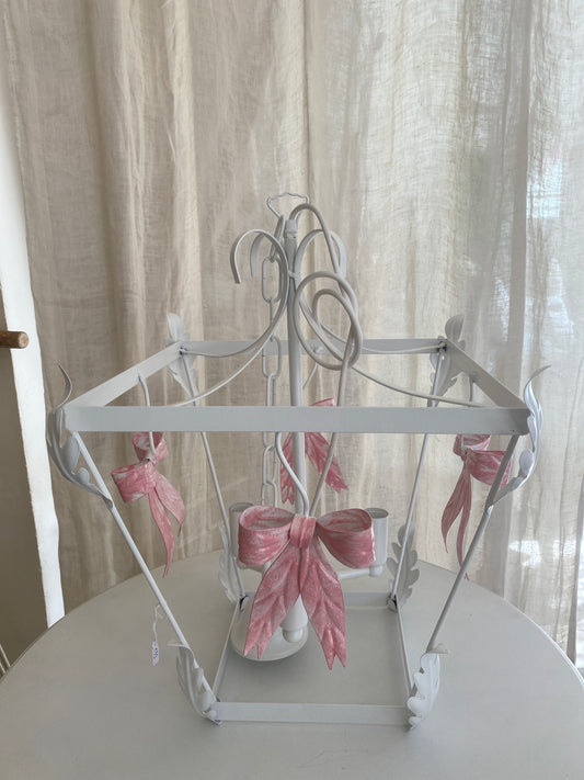 Lampadario a lanterna bianco con fiocco rosa 3 luci (si puo’avere del colore che desiderate su ordinazione) misura 37x36