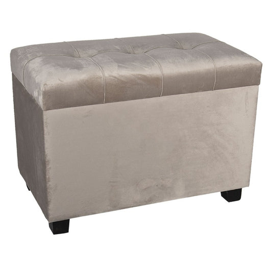 POUF 60X36X43 CM BEIGE LEGNO TESSUTO RETTANGOLO SGABELLO