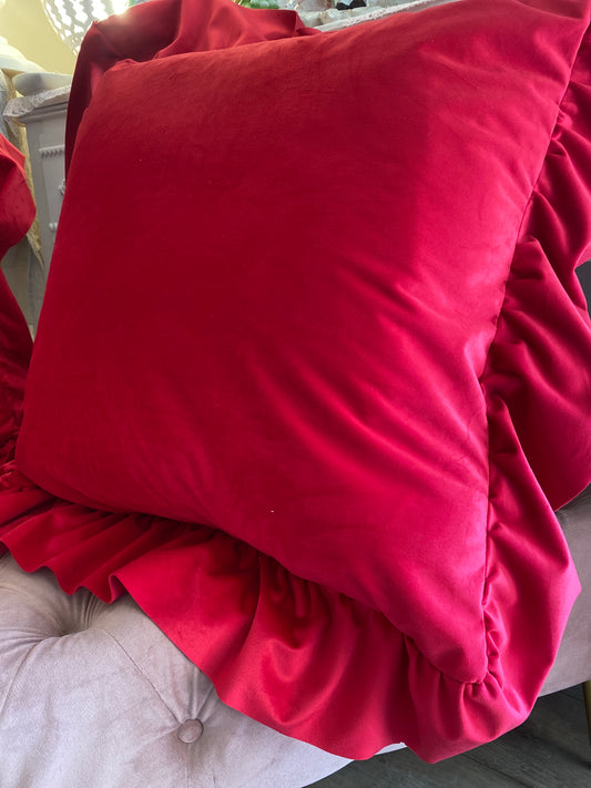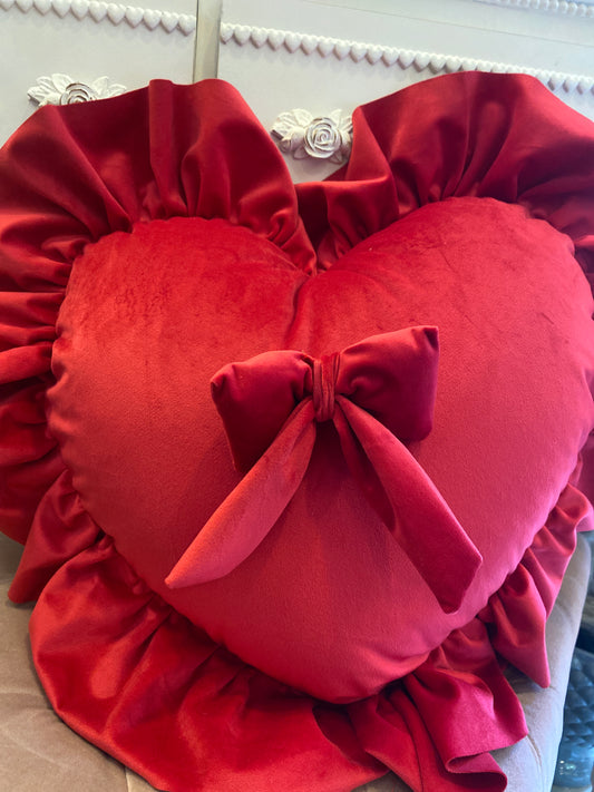 Cuscino cuore velluto rosso misura 50x60+10 la balza