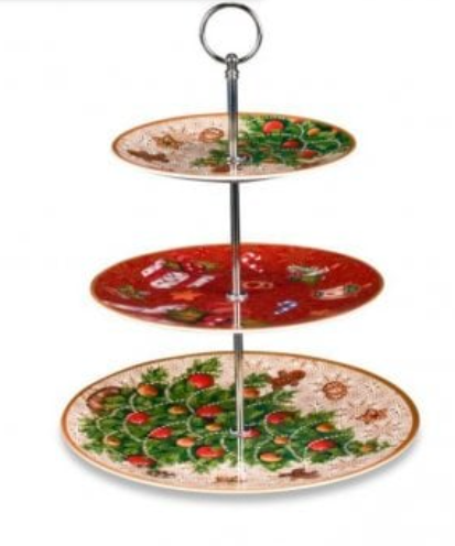 Elegante alzata a 3 piani per servire dolci e frutta.
