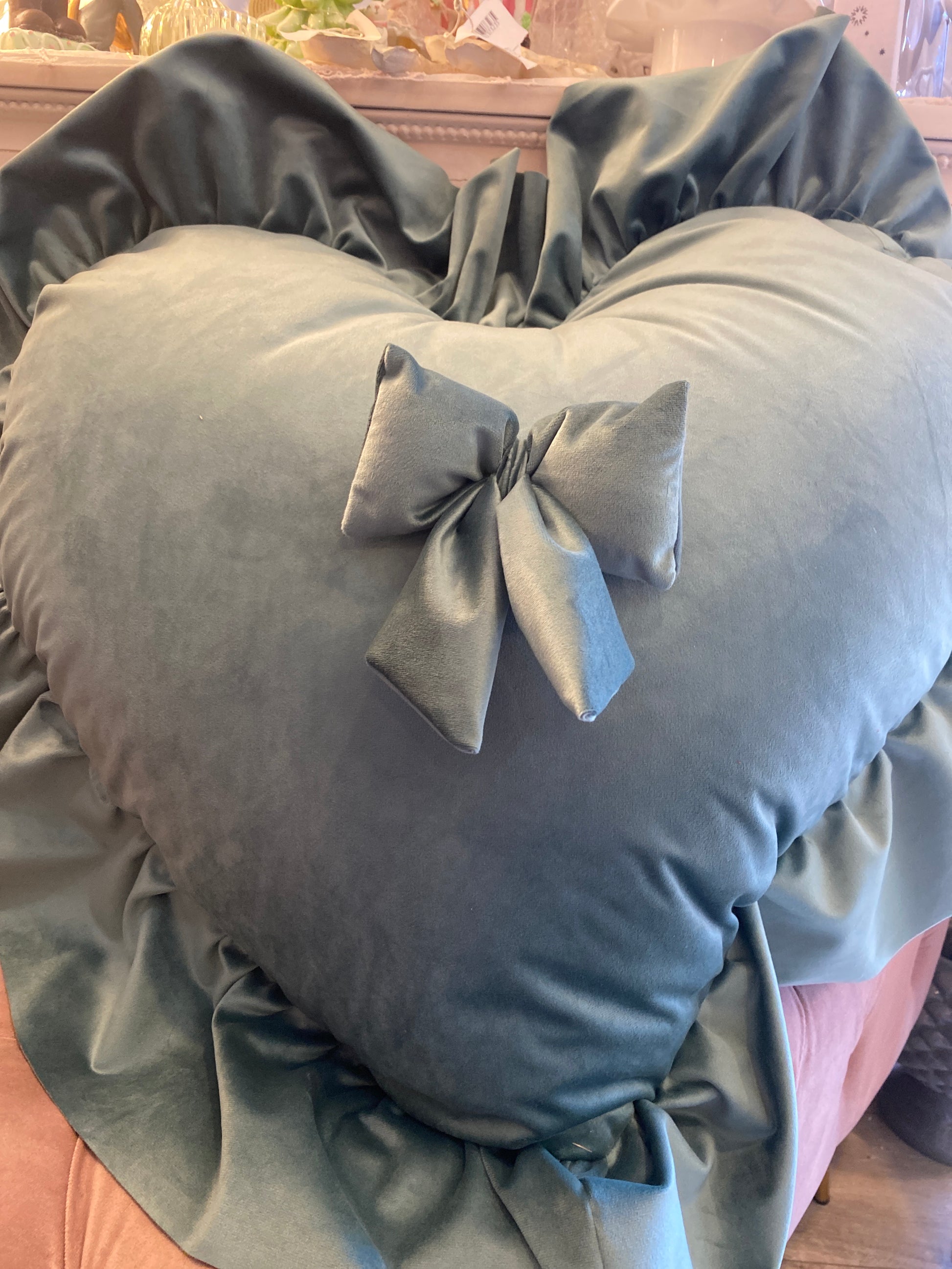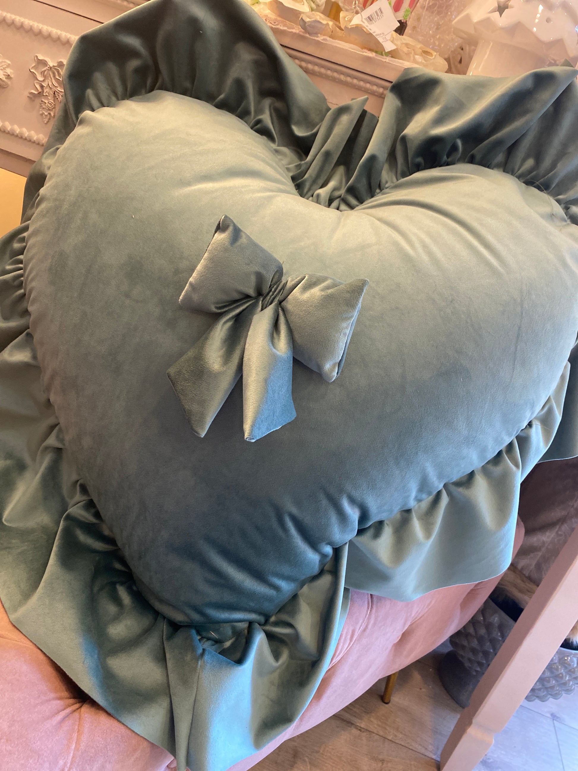 Cuscino cuore velluto verde sfoderabile misura 60x50+10 la balza