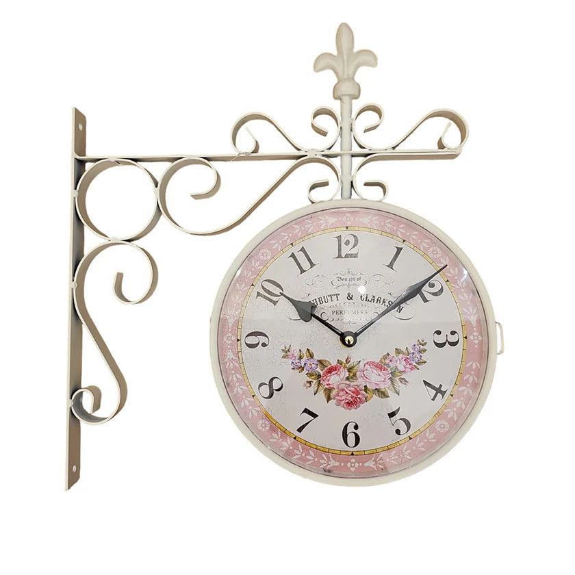 L'arte di Nacchi Orologio stazione ferroviaria da parete avorio con giglio e rose in metallo, vintage Shabby Chic